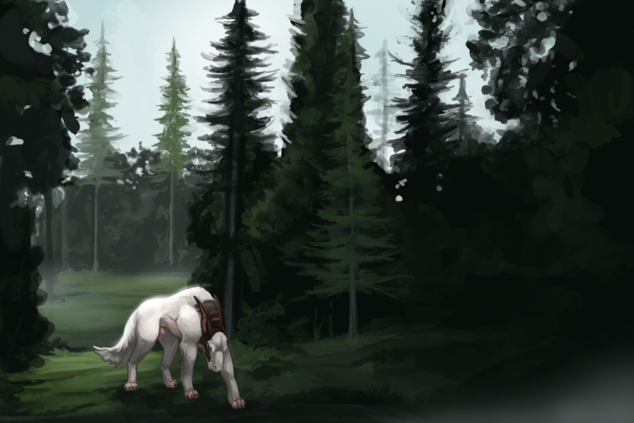 Focus on the environment with a small-scale character. Painting is relatively loose. Additional characters for +15 USD.